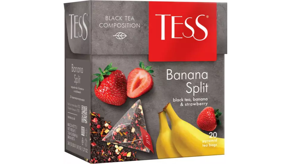 ЧАЙ TESS BANANA SPLIT ЧЕРН С КЛУБНИКОЙ И АРОМАТОМ БАНАНА 20ПАК 36ГР КОР